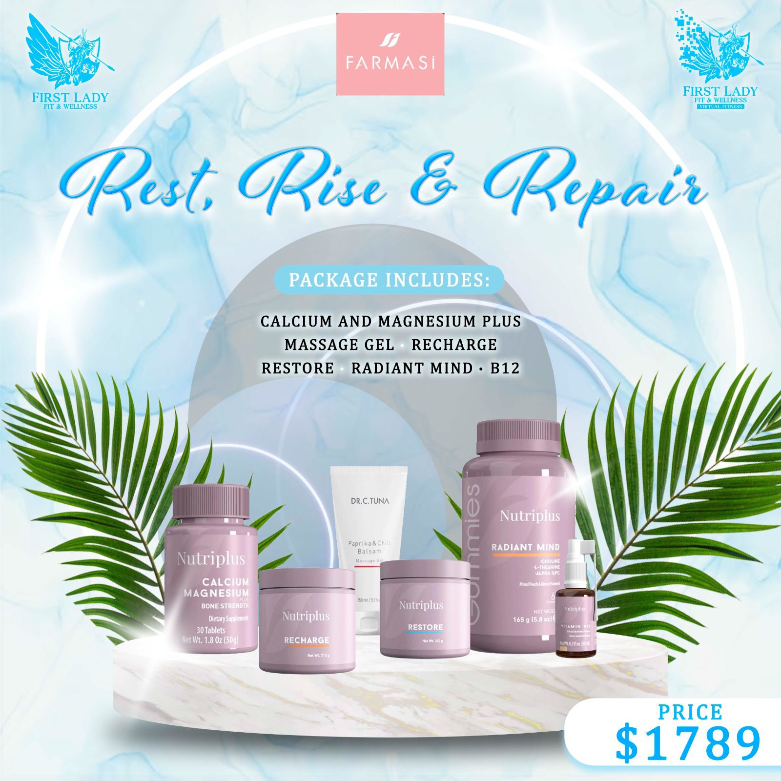 Restore your body and reset your mind with the Rest, Rise & Repair Package. This carefully curated wellness bundle supports muscle recovery, relaxation, and mental clarity—perfect for active women who want to feel energized, balanced, and refreshed every day. Ideal for recovery, stress relief, and total body care.
